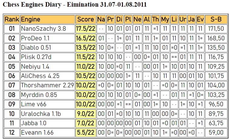 This is prehistory 🙂 11 years ago: NanoSzachy 3.8 wins Chess Engines Diary - Eimination 31.07-01.08.2011